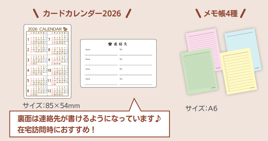 当WEBアンケートにお答えいただいた方には、もれなくカードカレンダー2026を10枚とメモ帳4種セットをプレゼント♪
