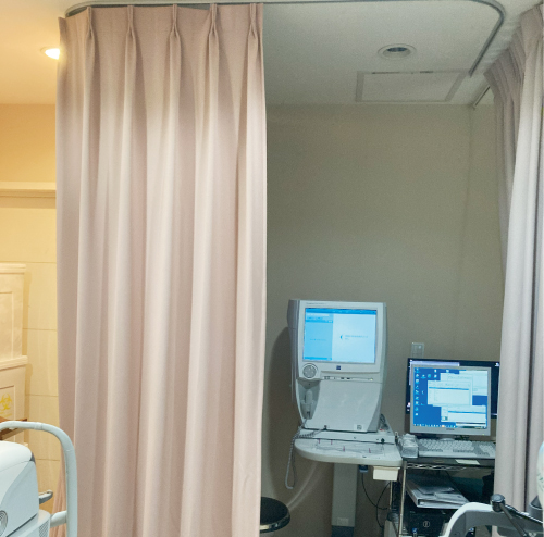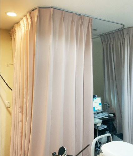 視野検査に使用する新しい機械を導入したのですが、その機械は光が入らない場所で使用しないと正しい検査結果が出ないため、どうしようか悩んでいました。院内で新しく部屋を作るのではコストが膨大に掛かるため、検査室の一部をカーテンで仕切るのはどうかと検討していた際に、シンリョウさんでリフォーム関連も行っているのを思い出して、相談をさせていただきました。