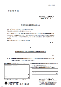 休業期間中のご注文・お問い合わせについては、ネットショップ・FAX(0120-5-11296)にて承ります。