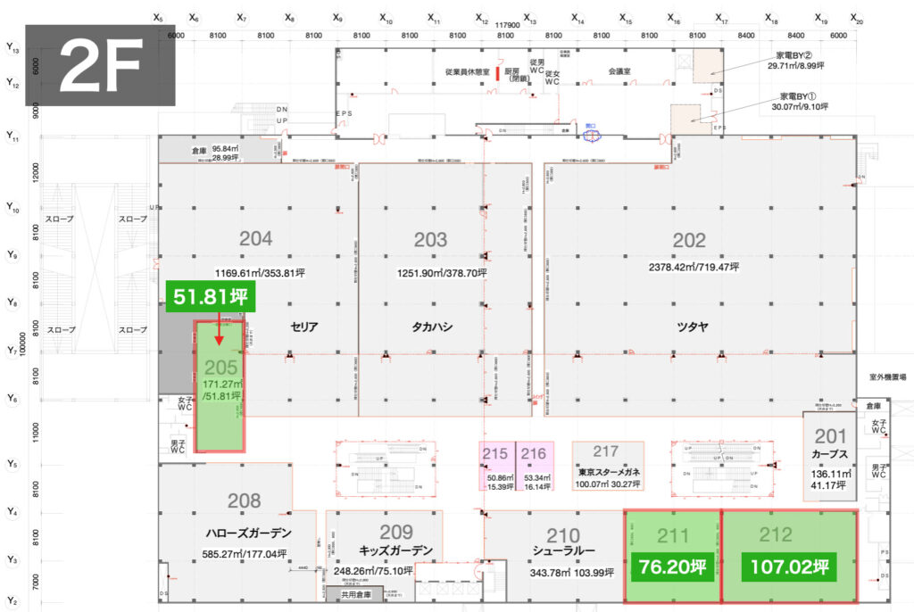 | 面積 | 2F:約220坪(分割可・区画等応相談) |